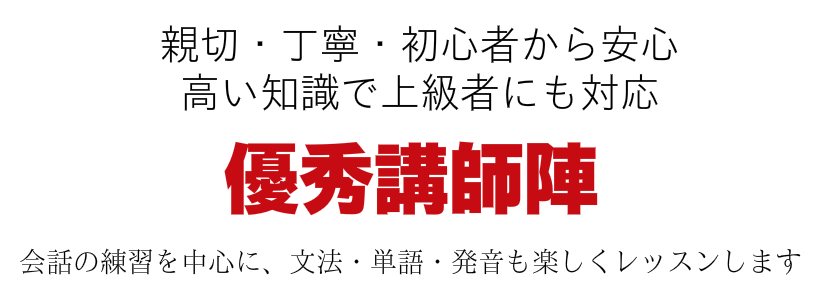 少人数スクールだからこそできる内容です。もちろん、文法力、単語力も会話の中で学んでいけます。「親切」「丁寧」に超初心者から上級者まで対応しています。