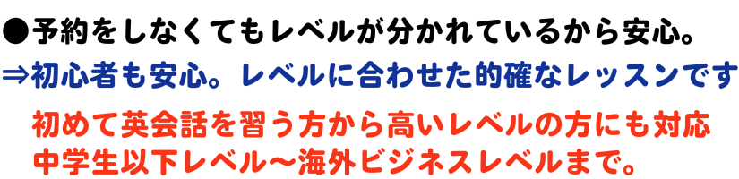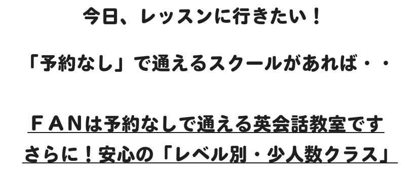 ●「予約なし」「レベル別」「少人数」+「FANメソッド」200名限定の英会話