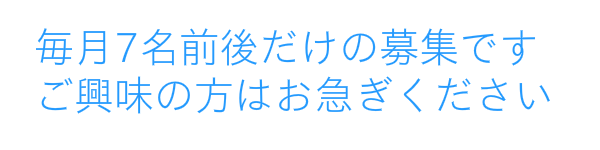 | 6月は特別月、8名の募集となります。ご興味の方はお問い合わせください |