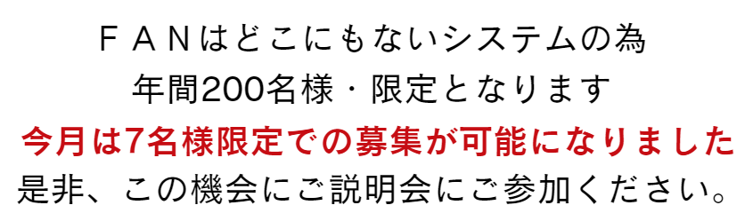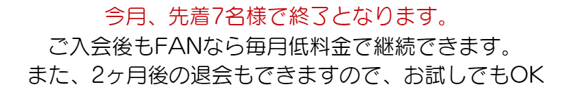 | 11月は10名募集中!。この機会にFANをご覧ください。 |