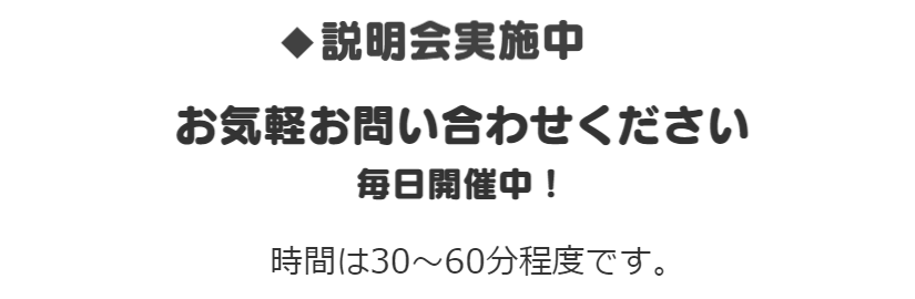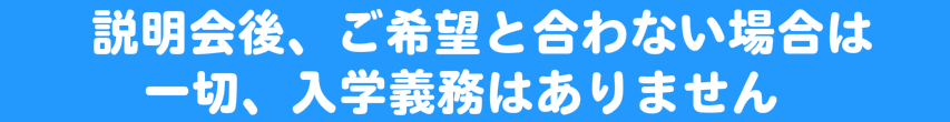 | 2019年1月5日(土)1月6日(日)特別説明会実施(体験はありません) |