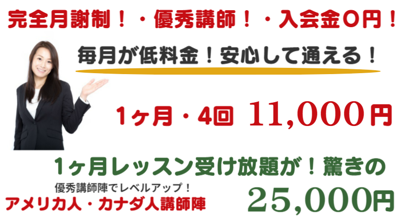 デイタイムは月謝5,000円、一般英会話でも5,500円で